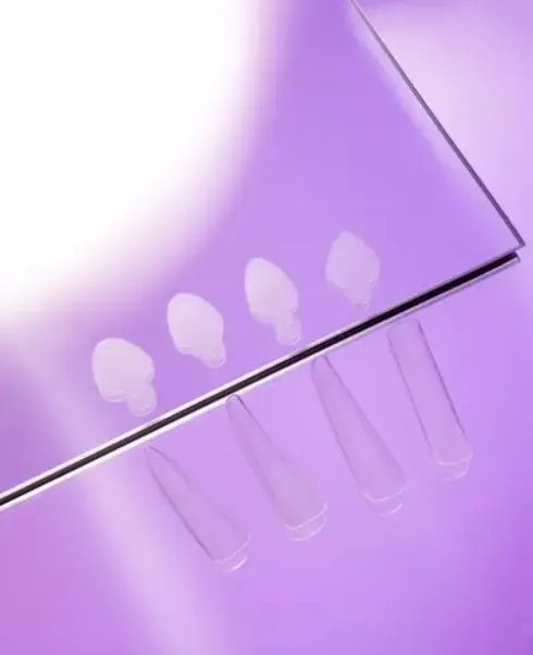 3️ Colocar el molde seleccionado en la zona del lecho ungueal dentro de la forma superior y fijarlo, presionando con los dedos o con pinzas.