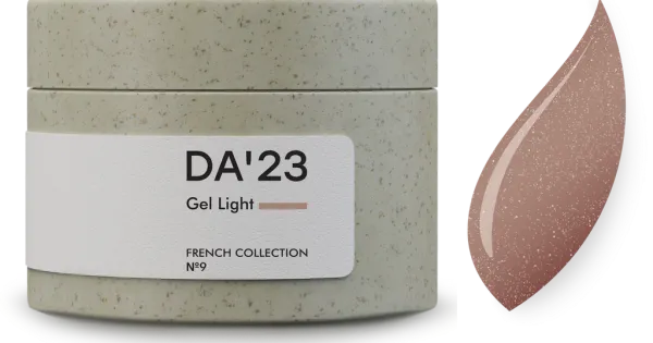 Gracias a su consistencia media, casi líquida, trabajar con Gel Light de DA’23 es rápido y sencillo. Su autonivelación permite crear una superficie lisa y atractiva para diseños creativos o para aplicar una capa de acabado. Se puede utilizar para crear estructuras finas, resistentes y duraderas, y, por supuesto, para reforzar la uña. Recomendamos usarlo como una excelente alternativa a Cover Base, aplicando obligatoriamente una fina capa de base Rubber Underlay debajo de Gel Light.