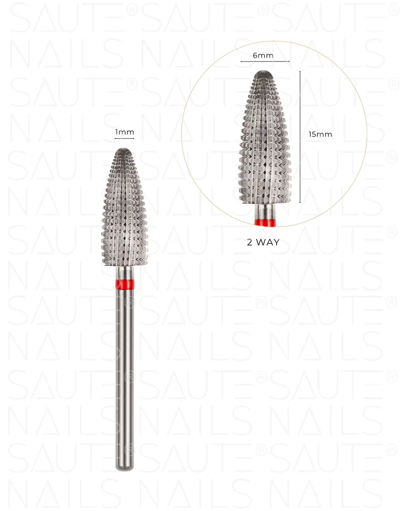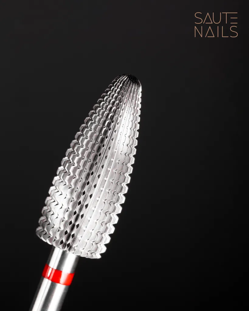 Fresa retirada de Saute Nails echa de carburo y es perfecta para retirar esmalte, trabajar con recubrimientos artificiales y dar forma al borde libre después de extensiones de uñas.